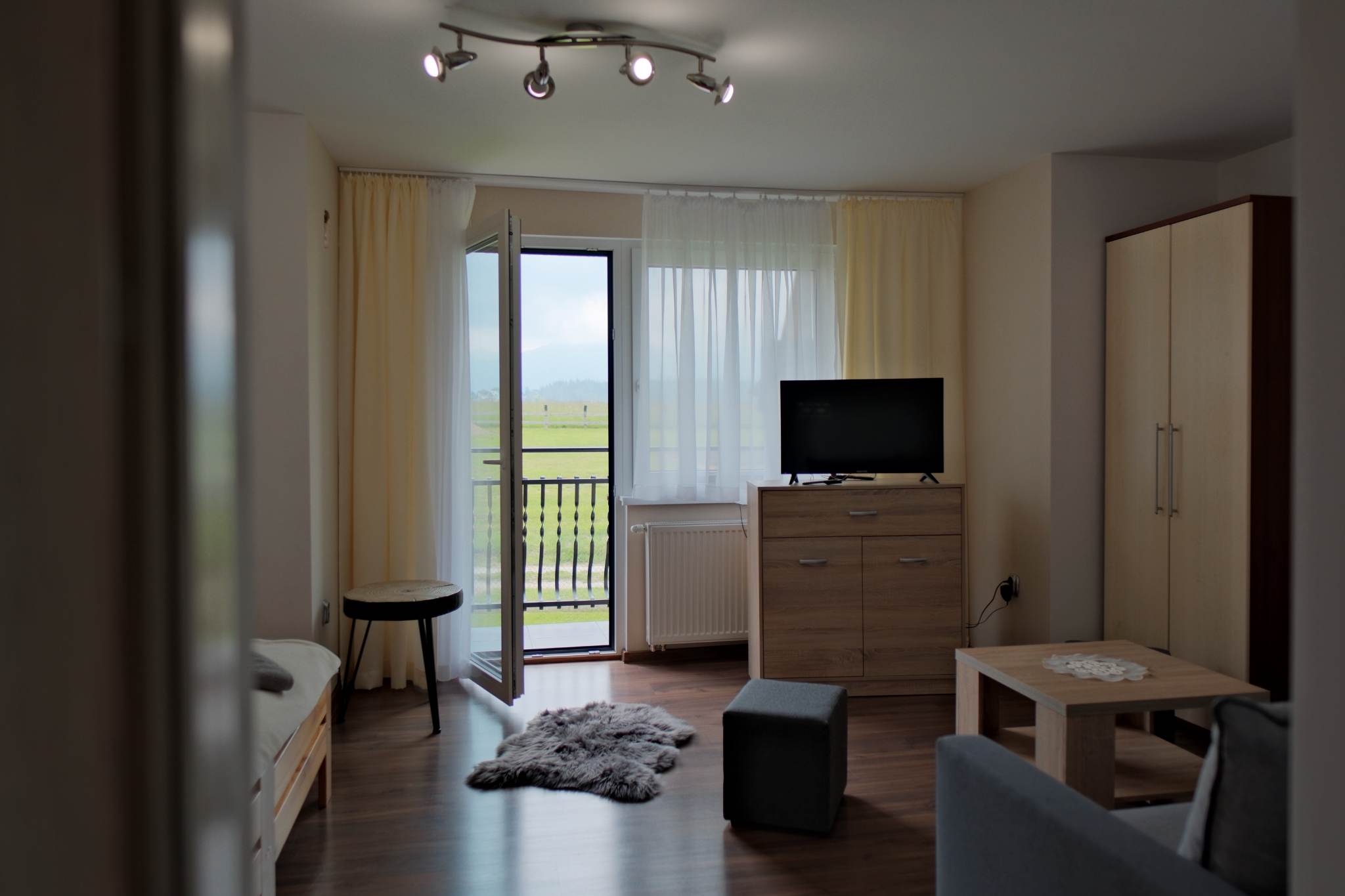 Dwa łóżka można złączyć lub zostawić osobno, w zależności od preferencji gości. Pokój posiada również balkon, gdzie można odpocząć i cieszyć się świeżym powietrzem. Przynależący do pokoju aneks kuchenny pozwala na przygotowanie własnych posiłków, co jest szczególnie wygodne dla osób preferujących samodzielne gotowanie. Łazienka znajduje się poza pokojem do wyłącznego użytku gości tego pokoju. Wszystko to sprawia, że pokój jest idealnym miejscem zarówno na krótki, jak i dłuższy pobyt dla grupy przyjaciół lub rodziny.